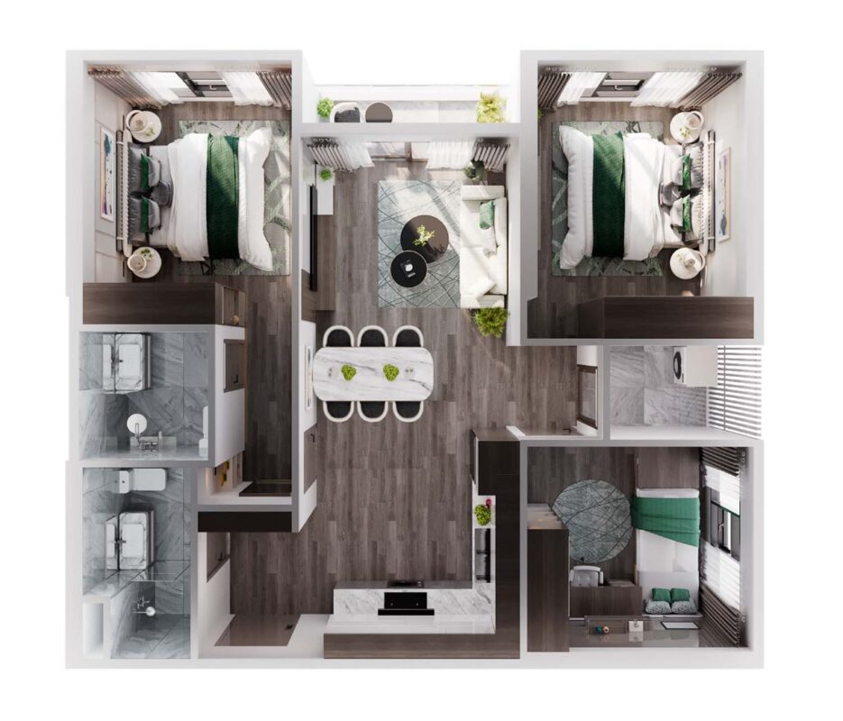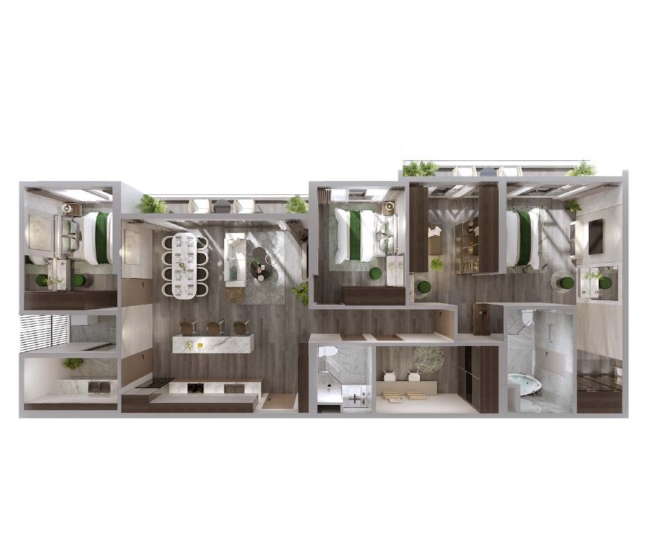 3PN: 71m²–81m² – Hoàn hảo cho gia đình đông thành viên.