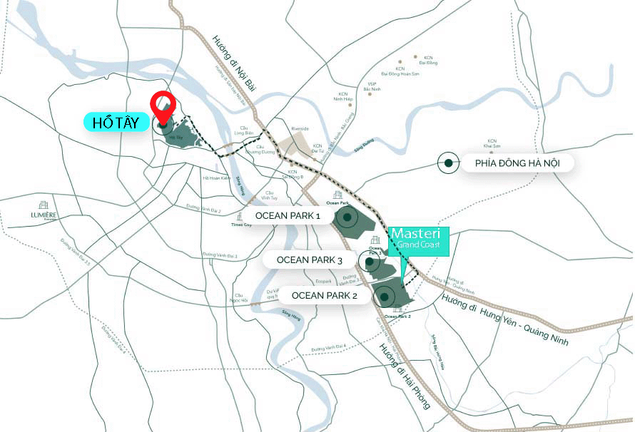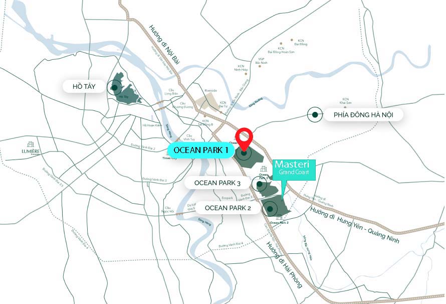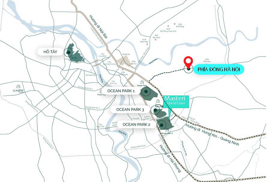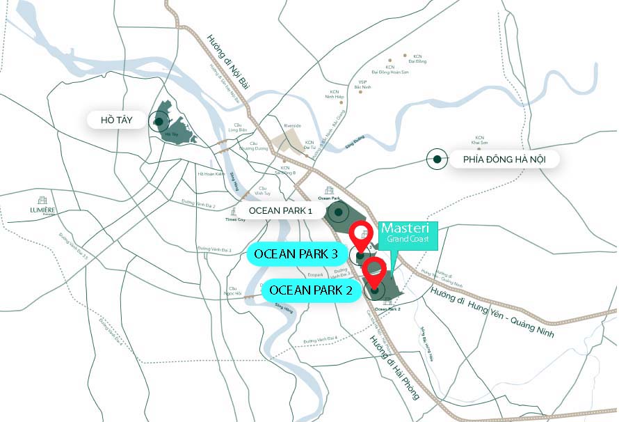 Masteri Grand Coast nằm tại trung tâm khu đô thị Dream City (hay còn có tên gọi quen thuộc khác là Vinhomes Ocean Park 2) thuộc Xã Văn Giang – Tỉnh Hưng Yên. Dự án nằm giữa 2 trục đường San Hô 24 và trục đường San Hô 25 (Trục kết nối trực tiếp với đường vành đai 3.5, lên cao tốc Hà Nội – Hải Phòng), thuộc phân khu San Hô, sát bên công viên hồ tạo sóng Wonder Wave Park – một trong những đại tiện ích của Ocean City.